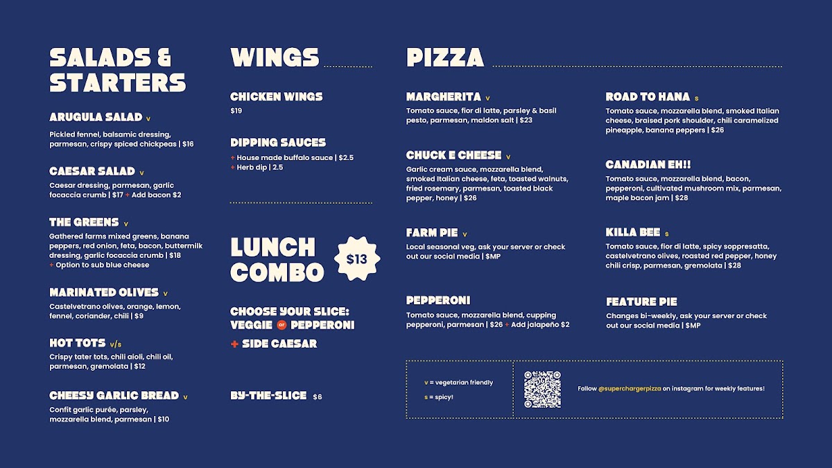 Wrapping up my visit to Supercharger Pizza at 4701 Marine Ave, Powell River, BC, I can confidently say their menu strikes the perfect balance between comfort and creativity. The SALADS & STARTERS section sets a refreshing tone - the ARUGULA SALAD is crisp and peppery, while the CAESAR SALAD brings that classic, creamy indulgence everyone craves. For something heartier, the HOT TOTS and CHEESY GARLIC BREAD are crowd-pleasers, ideal for sharing or indulging solo. I also loved THE GREENS, a vibrant, well-seasoned option that feels both light and satisfying.